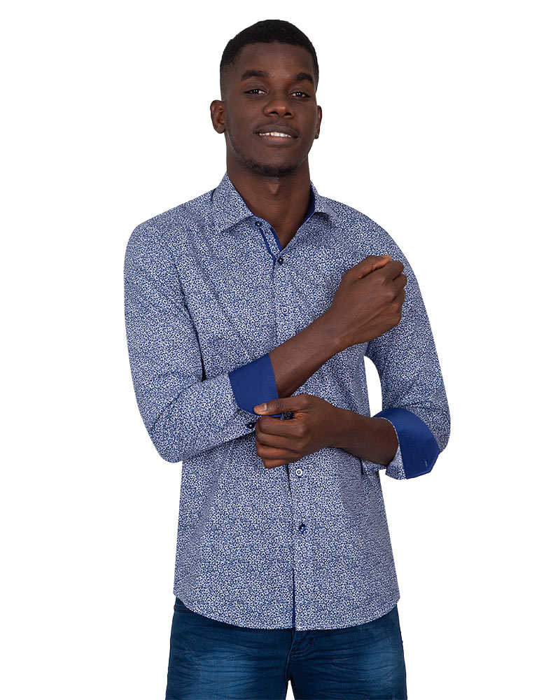* %97 cotton %3 lycra* Very soft fabric* Printed design* Inside placket details* Contrasting Collar/Cuff InsertFeaturesCollar Type:Classic CollarFabric Type:%97 Cotton %3 LycraPattern Type:FloralCuff Type:Single CuffFit Type:Slim Fit, Regular Fit