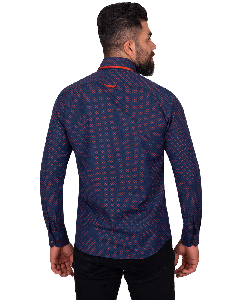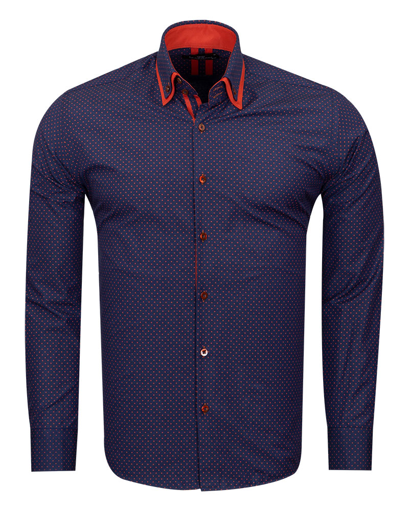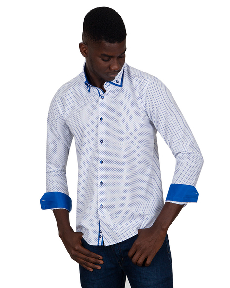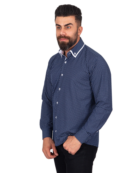 Luxury Makrom Polka Dot Printed Mens Double Collar Shirt SL 6813