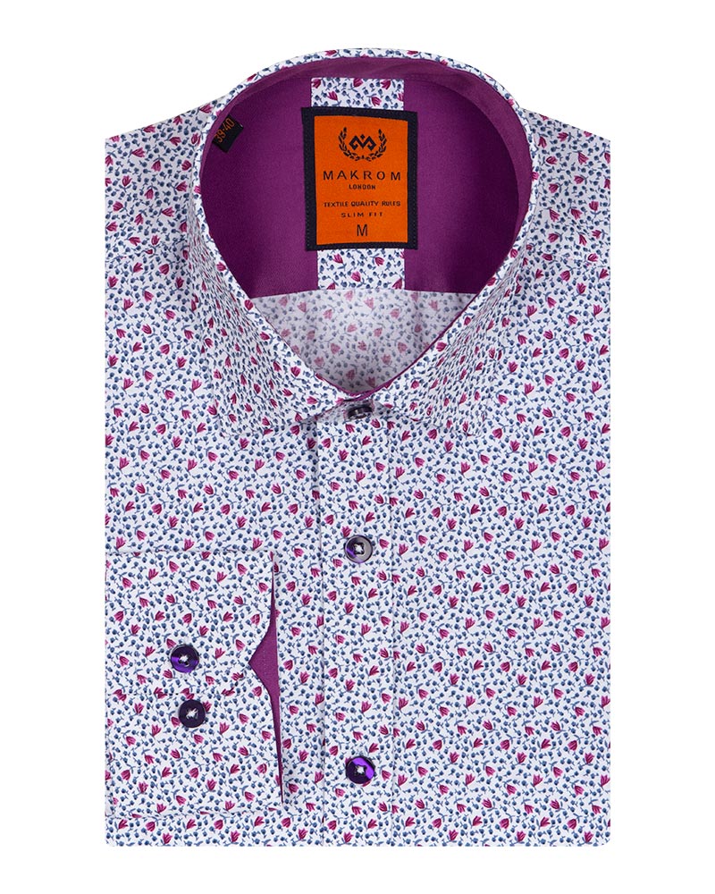 Luxury Red Flowers Printed Long Sleeved Mens Shirt SL 6686